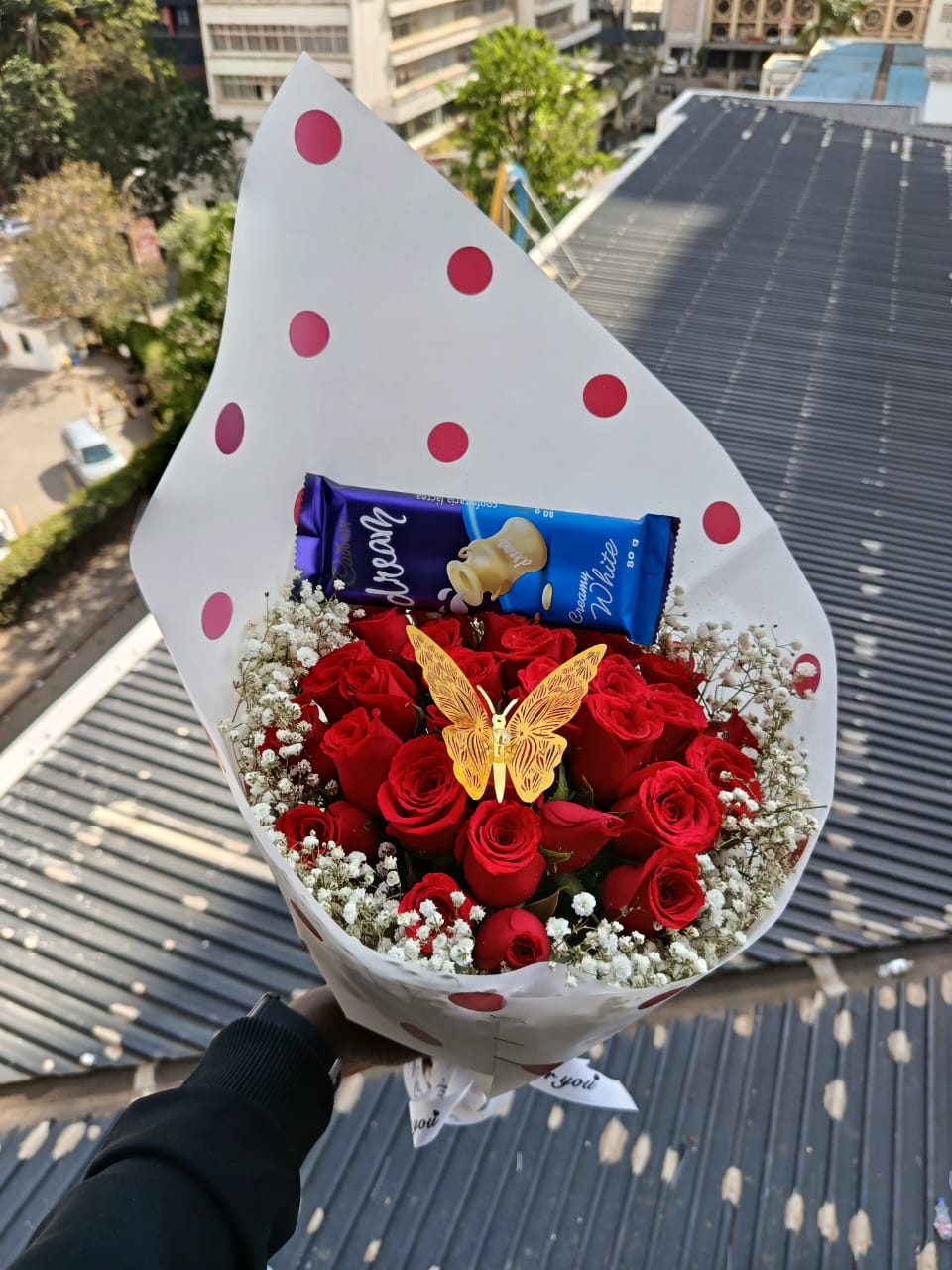 ACCESSORIZED RED BOUQUET & CHOCOLATE